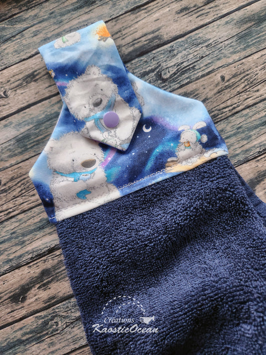 Serviette pratique qui s'accroche sur la porte du four ou un porte-serviette.