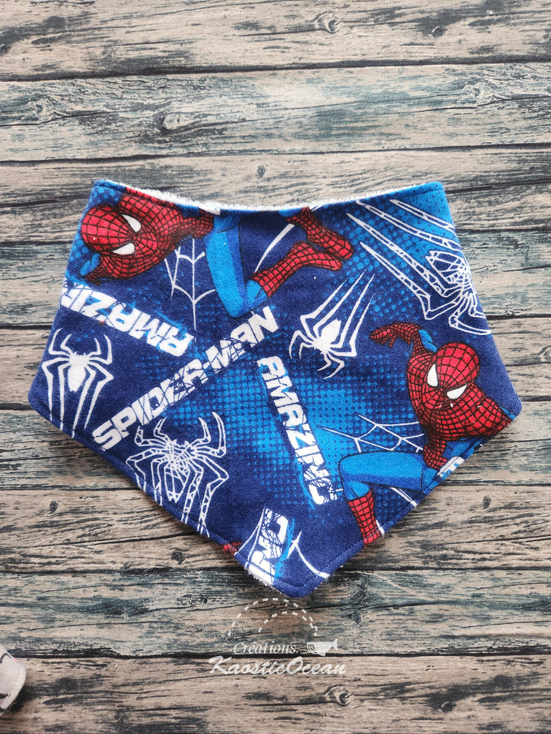 Bavoir pour bébés et jeunes enfants. Motif en flanelle avec envers en ratine douce et absorbante. S'attache avec un bouton-pression, avec 2 ajustements possibles.