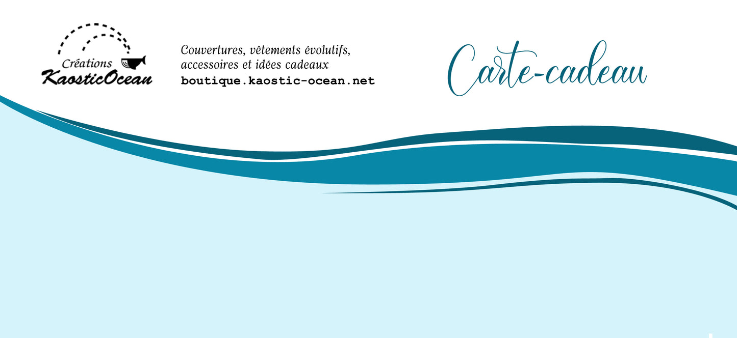 La carte-cadeau est virtuelle et vous sera envoyée par courriel après votre achat.