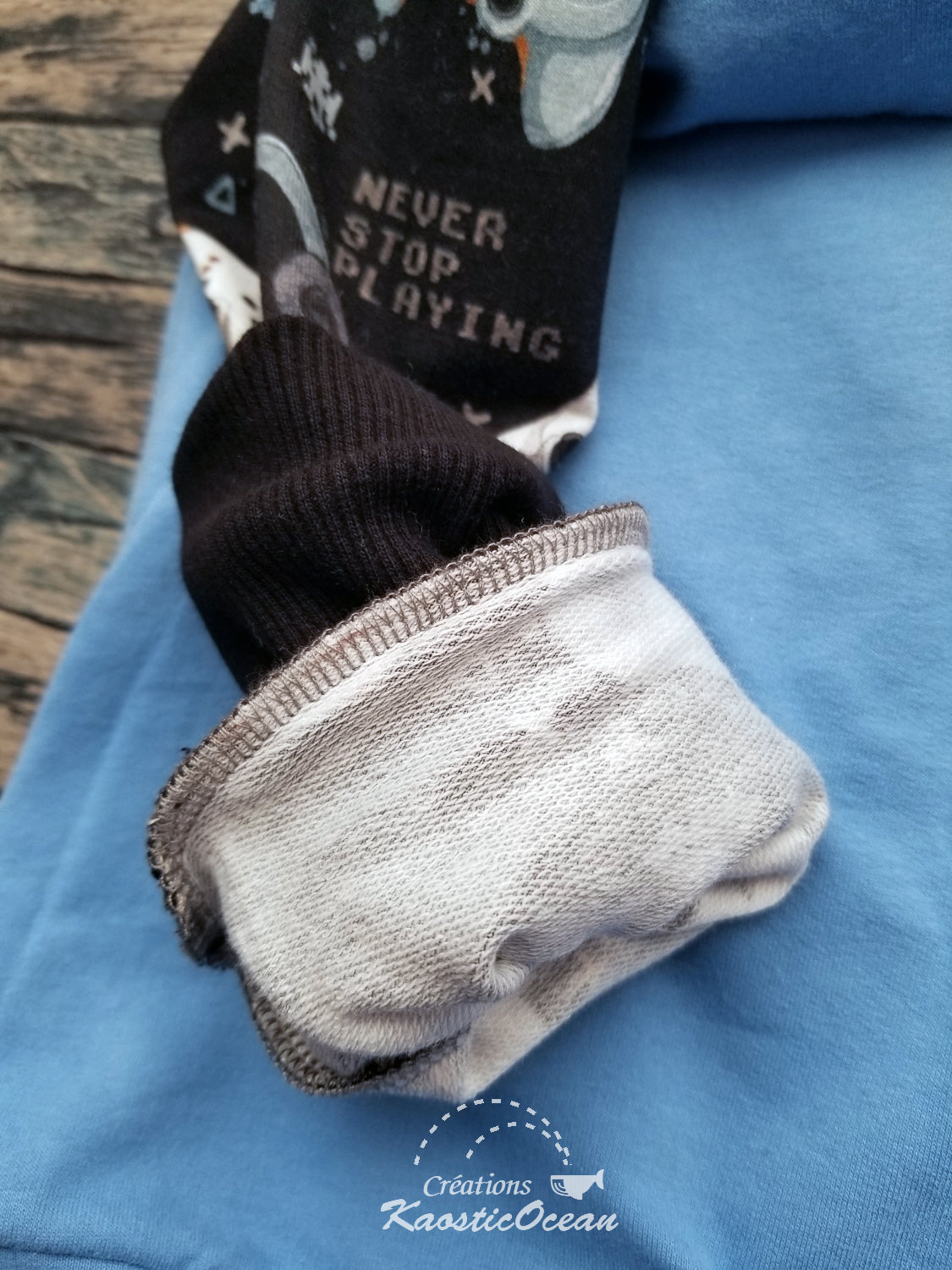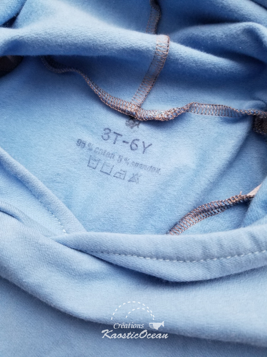 - En coton bouclé extensible (french terry) pour les manches et coton bouclé brossé (ouaté) pour le corps et le capuchon