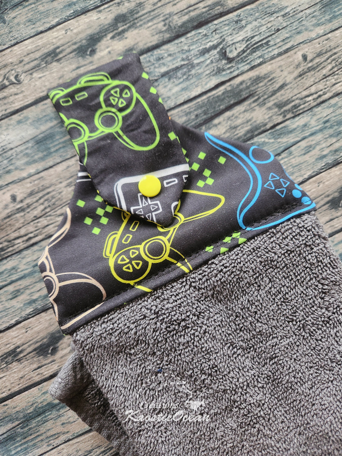 Serviette pratique qui s'attache avec un bouton pression. Parfait pour accrocher sur la porte du four de la cuisine ou le porte-serviette de la salle de bain.