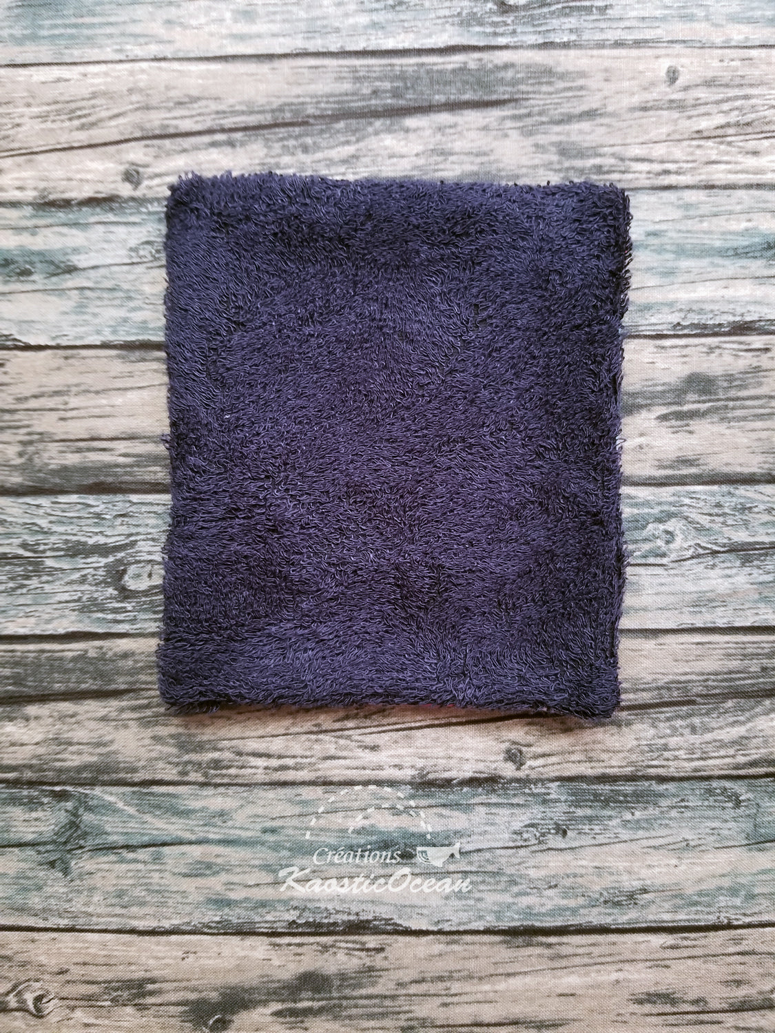 Débarbouillette sous forme de petite mitaine. Elle peut servir pour le bain des enfants ou comme lingette pour le visage. Tissus doux avec un côté en flanelle et l'autre en ratine de bambou.