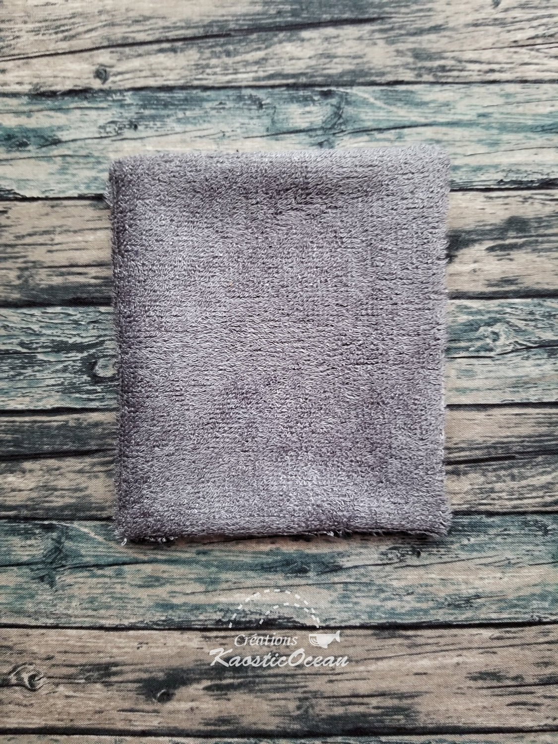 Débarbouillette sous forme de petite mitaine. Elle peut servir pour le bain des enfants ou comme lingette pour le visage. Tissus doux avec un côté en flanelle et l'autre en ratine de bambou.