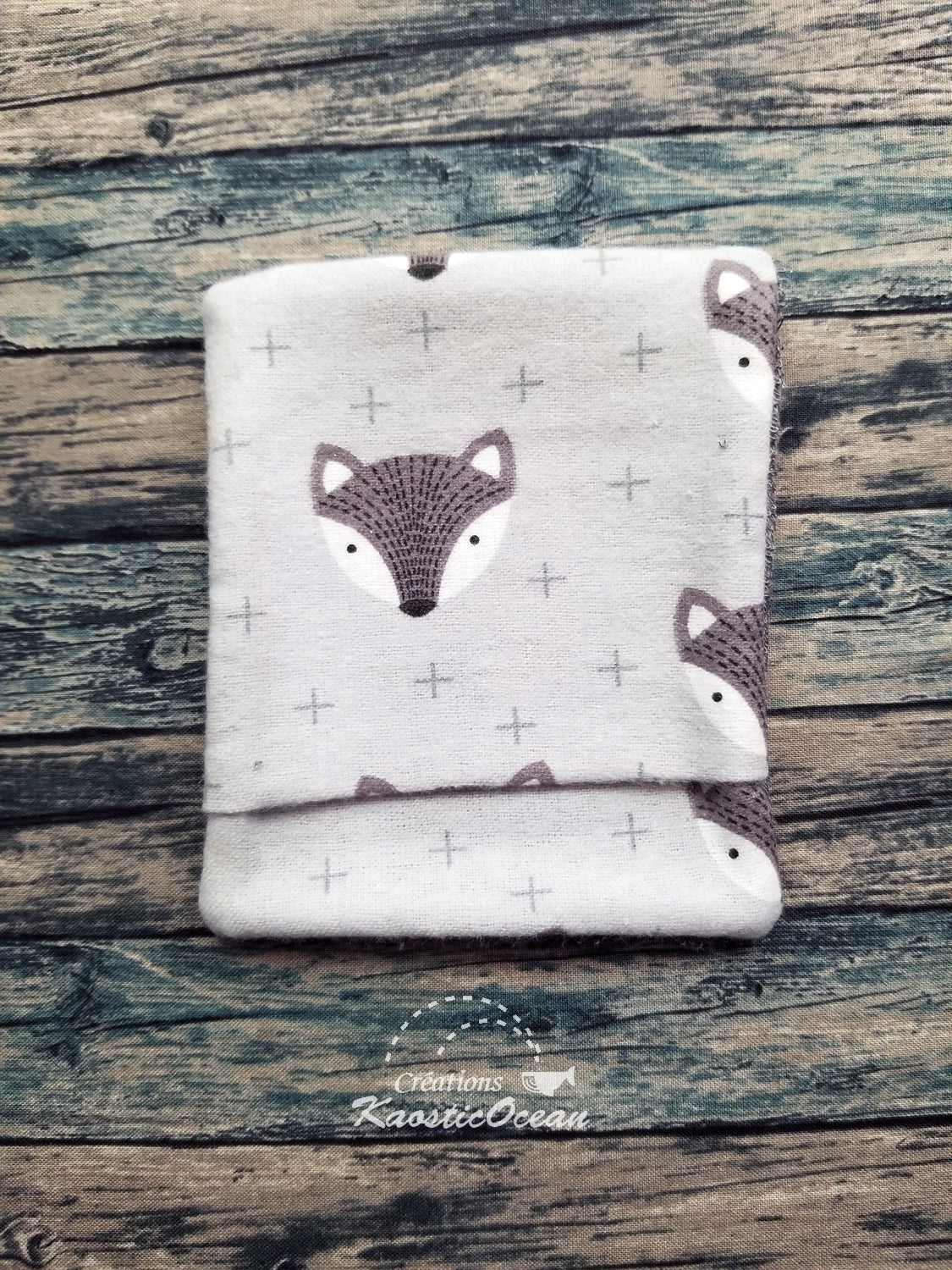 Débarbouillette sous forme de petite mitaine. Elle peut servir pour le bain des enfants ou comme lingette pour le visage. Tissus doux avec un côté en flanelle et l'autre en ratine de bambou.