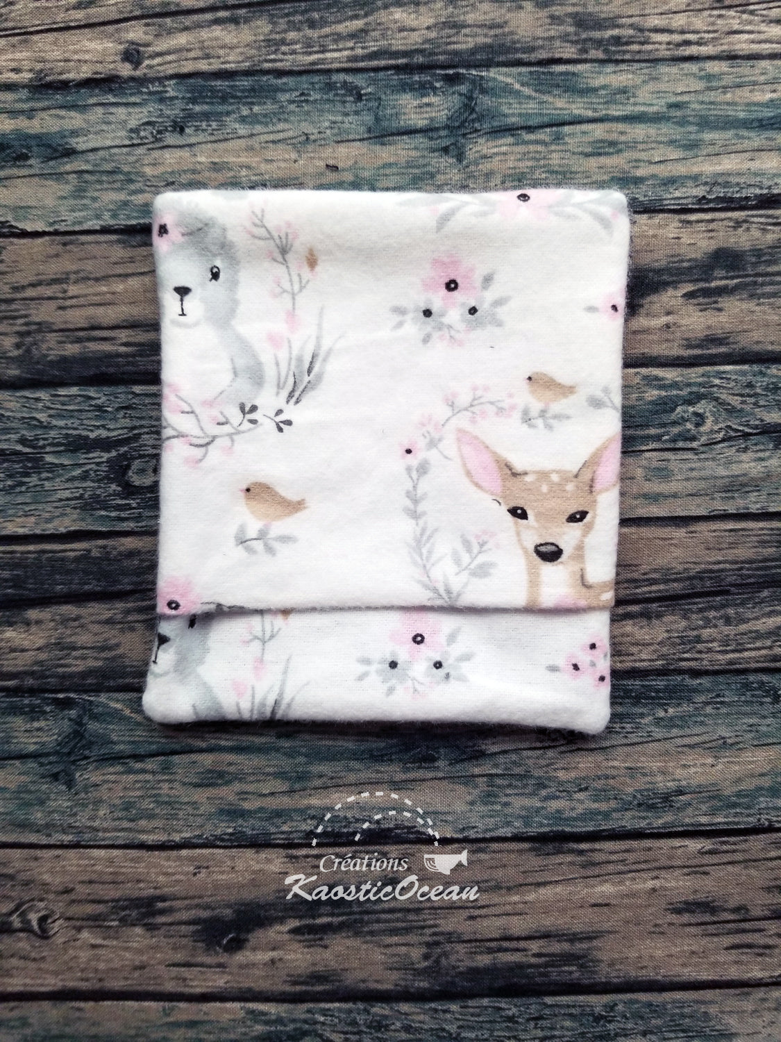 Débarbouillette sous forme de petite mitaine. Elle peut servir pour le bain des enfants ou comme lingette pour le visage. Tissus doux avec un côté en flanelle et l'autre en ratine de bambou.