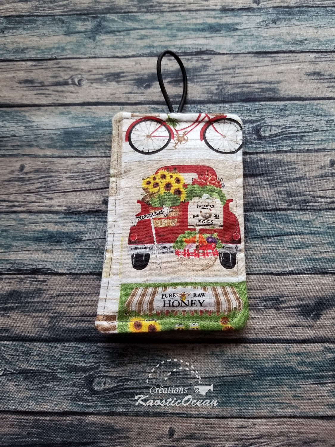 Pochette de transport pratique pour mouchoirs. Un élastique permet de l'accrocher partout. Elle peut contenir une dizaine de mouchoirs (voir la méthode de pliage dans les images).